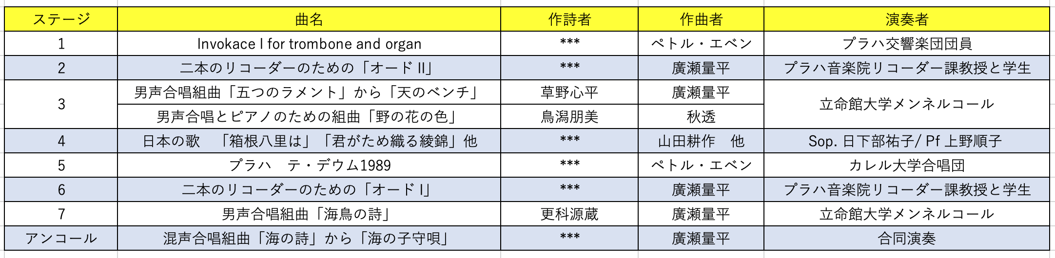 この演奏会は上記のように、ペトル・エベン Petr Eben(1929-2007)と廣瀬量平(1930-2008)というチェコ(チェコ・スロバキア時代を含む)と日本の音楽を代表する同時代の作曲家による、小規模の器楽曲と合唱作品を中心に構成されたユニークなプログラムだった。