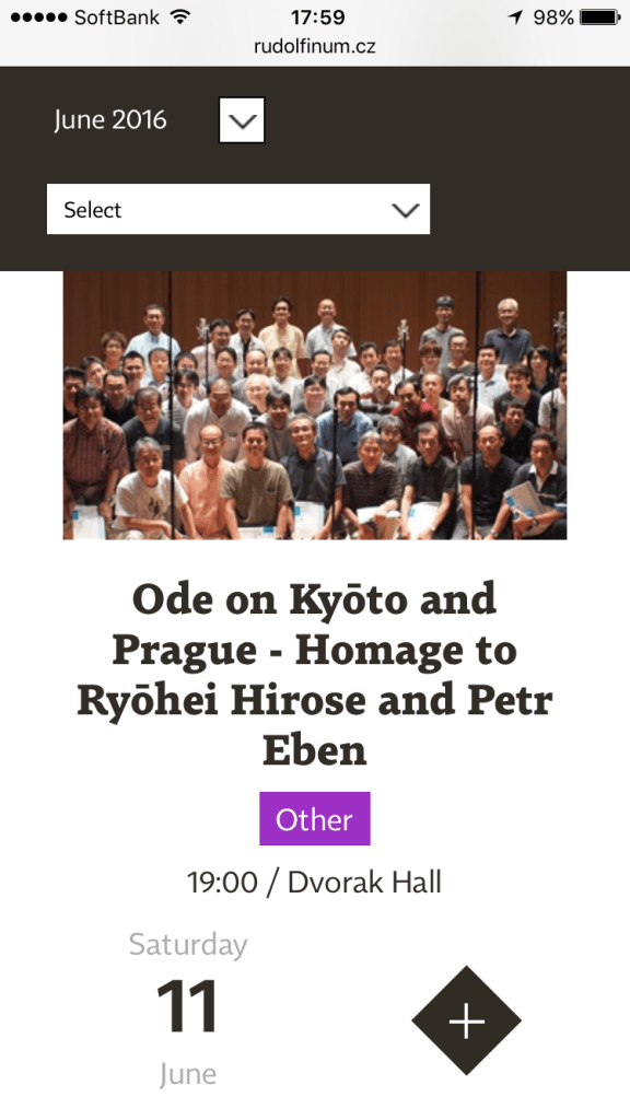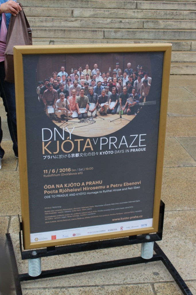 2016年6月11日、プラハ市と京都市が姉妹都市になって20周年を記念する演奏会がプラハで開催された(下のポスターやコンサート案内サイトを参照願います!)。学生時代に所属していた立命館大学メンネルコールのOB合唱団に参加の依頼があり、メンバーの一人として私は、ドヴォルザークホールのステージに立つことができた。(*チェコ風にはドヴォジャークと発音するようだが、ドヴォルザークと記す)