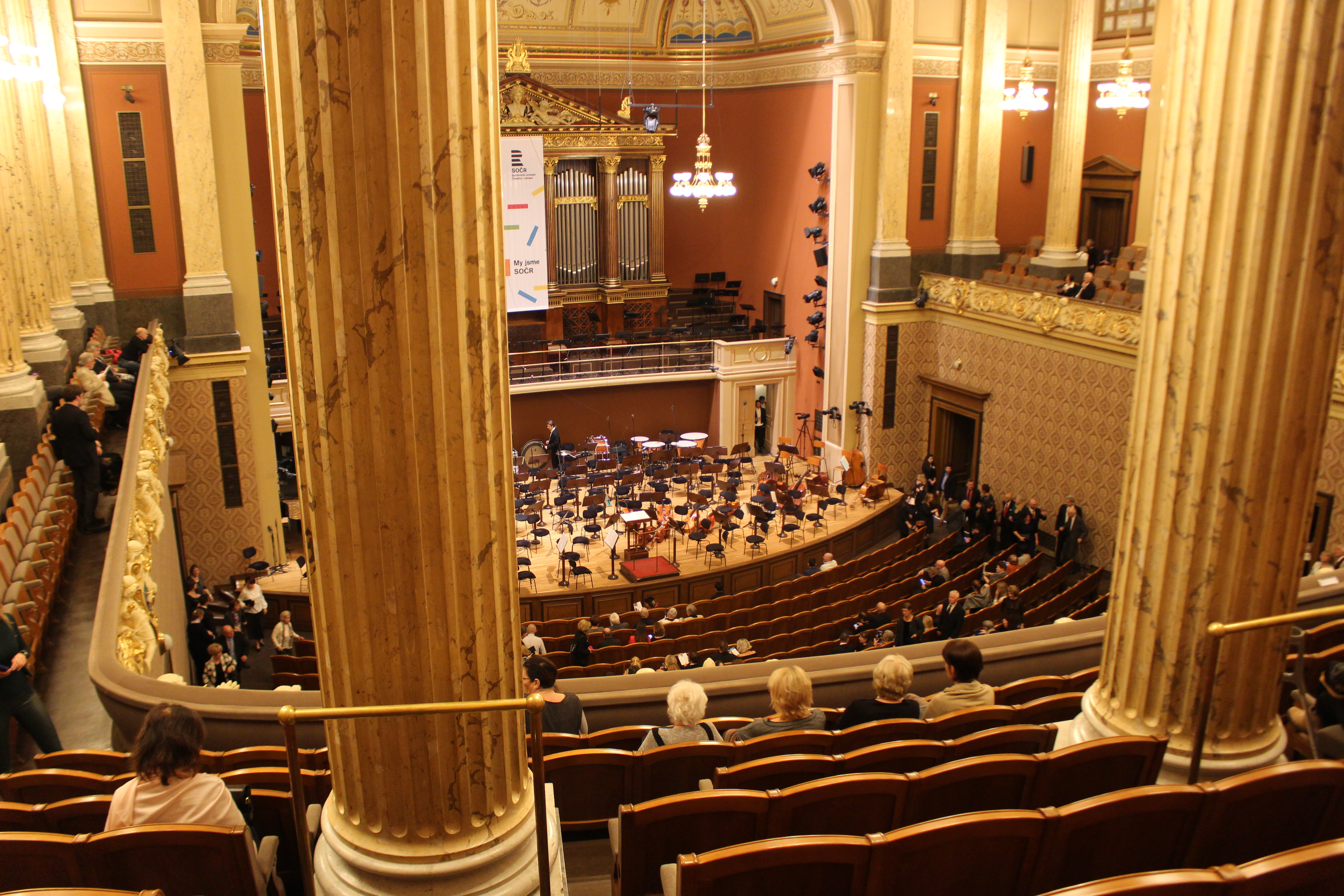 このホールは、チェコを代表する作曲家の一人、ベドジフ・スメタナが亡くなった翌年の1885年に完成している。その後1896年に、チェコフィルハーモニー管弦楽団が設立され、作曲家アントニン・ドヴォルザークがデビュー公演を指揮している。チェコフィルは2020年/2021年シーズンが125期を数えており、こうしたホール、コンサート、音楽が市民社会に根づき始めた歴史と重なっている。
