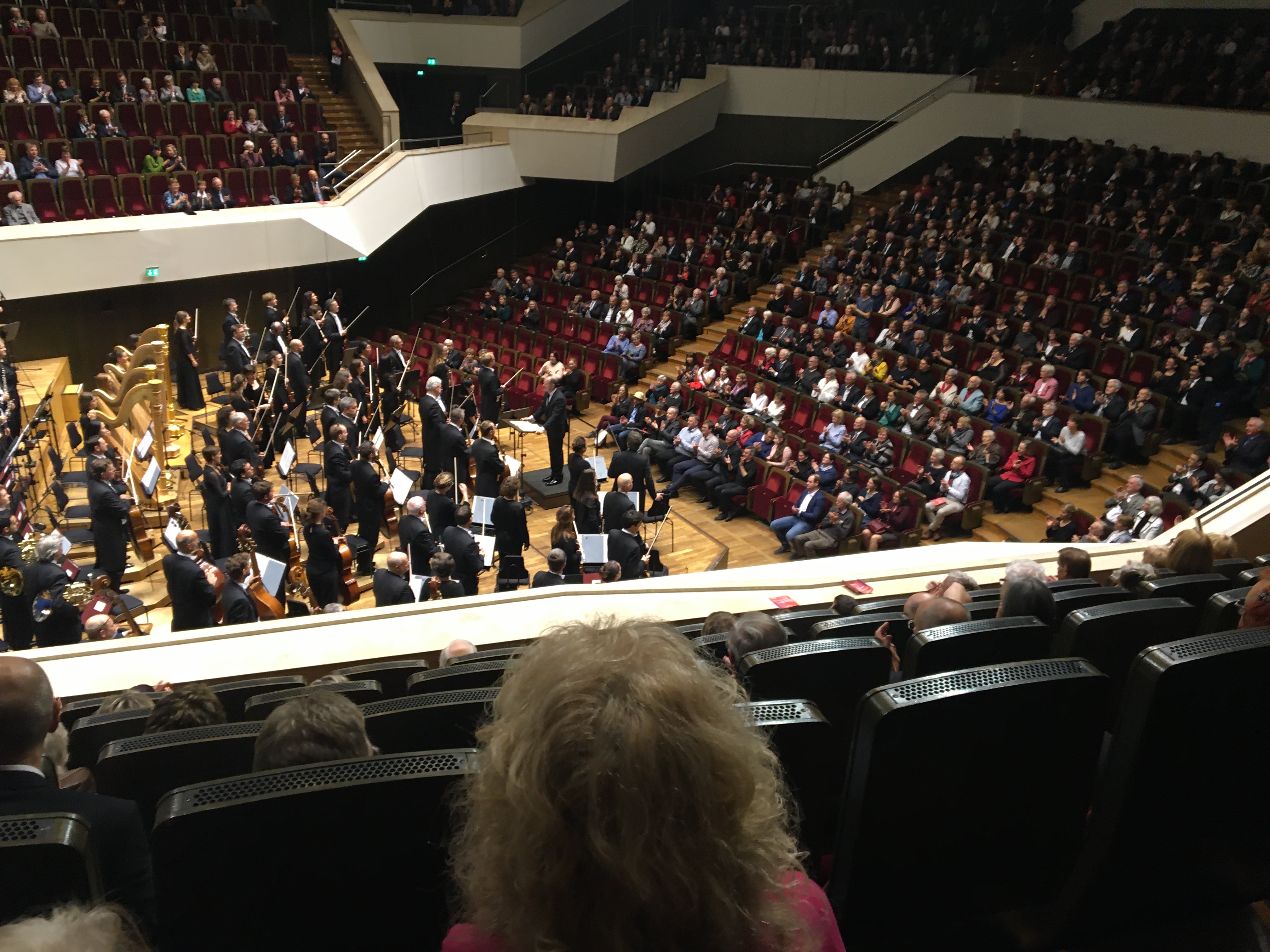 コンサートホールでも、フィルハーモニー専用ホールはいわゆるワインヤードと言われ、幅も奥行きも広い。客席のブロック毎に扉があり、階段を上がり通路を歩いてその扉を目指さなければならない。エレベーターなどの付帯設備も充実しているから困りはしないだろう。しかしなかなか遠く、正直くたびれると感じる。