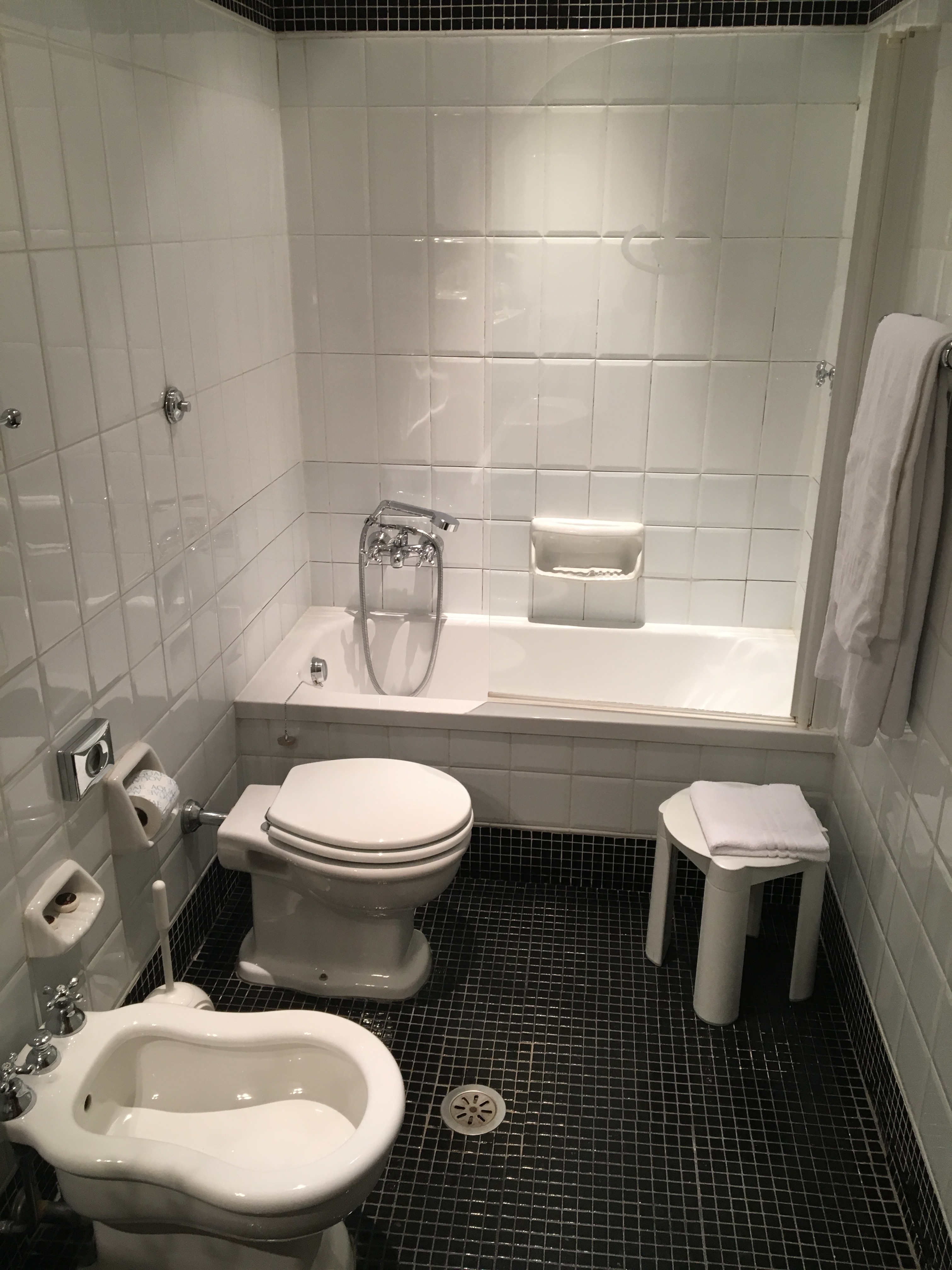 イタリアのホテルには、ビデと呼ばれるもう一つの便器(洗面台)が設置されている。「ウォッシュレット」は、こうした二つの便器を統合した発展型なのかもしれないと思った。ローマで泊まったホテルは、マスカーニ。「カヴァレリア・ルスティカーナ」を作曲した音楽家の名前で、フロントには楽器のレプリカが置かれていた。実は、このホテルに泊まった時、セーフティボックスに財布を忘れたことを成田空港に着いてから気づいた。ホテルを出てから24時間以上経過して帰宅後ホテルに連絡したら、盗まれることなくボックスの中に残っていたことが判明した。ほんと助かった!
