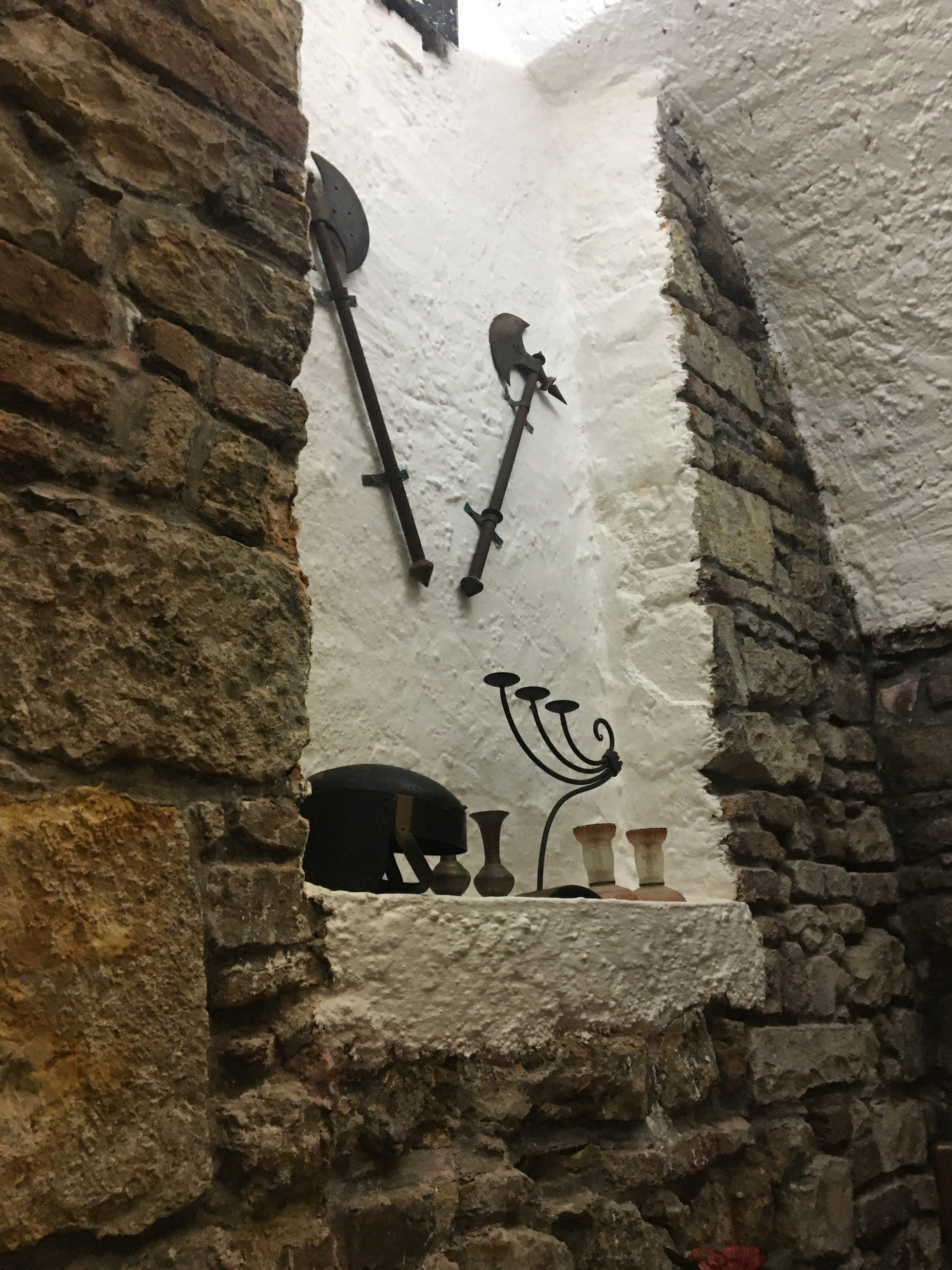 中央と右の写真は、プラハで泊まったベトレムクラブというホテルの地下にある食堂。剣や防具などが飾られている。ここは、ベツレヘム礼拝堂の向かいにあり、ヤン・フスからフス戦争に関わるレプリカなのだそうだ。ホテルにも個性があり、その土地でゆかりのある人や由来を知るのも旅の楽しみだ。