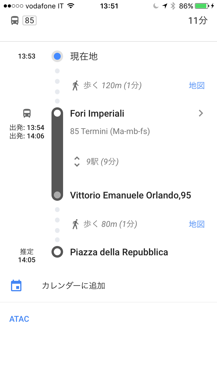この旅から、モバイルWi-Fiルーターをレンタルして持ち歩いた。スマホのGoogleマップナビゲーターはとても便利で、写真のようにバスや地下鉄がどこに何時に来るかを教えてくれるし、場所までも案内してくれる。おかげで効率良く移動が可能になった。