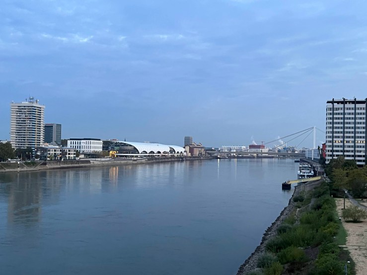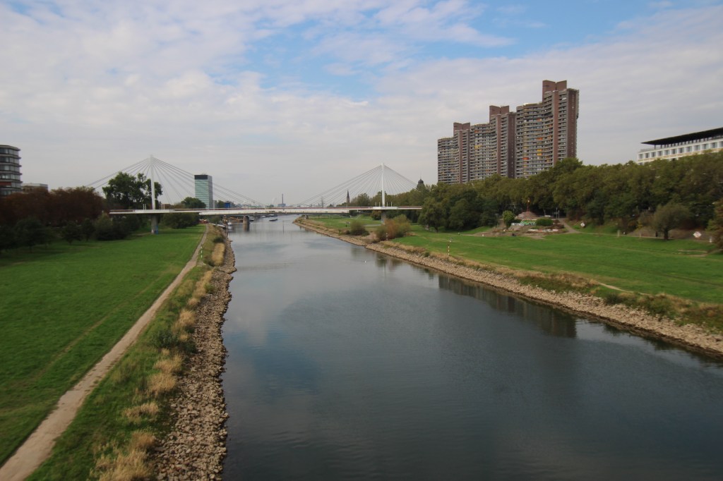 これらはいずれもマンハイムの市内を散歩している中で、ライン川との合流地点方向に歩きながら撮影した写真である。今もこの川を輸送船や観光船が往来しているのがわかる。写真の手前側が上流になり、ヘイデルベルクやシュツットガルトといった街がある。地政学的に、広大な平野が広がるのではなく、むしろ山に囲まれた内陸に位置するので、この川の上流に産業があることをなかなか想像できない。