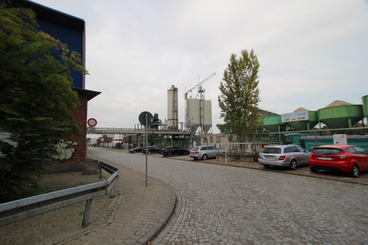 ネッカー川の入口にあった穀物のストックヤード。船から積荷を揚げて保管している。