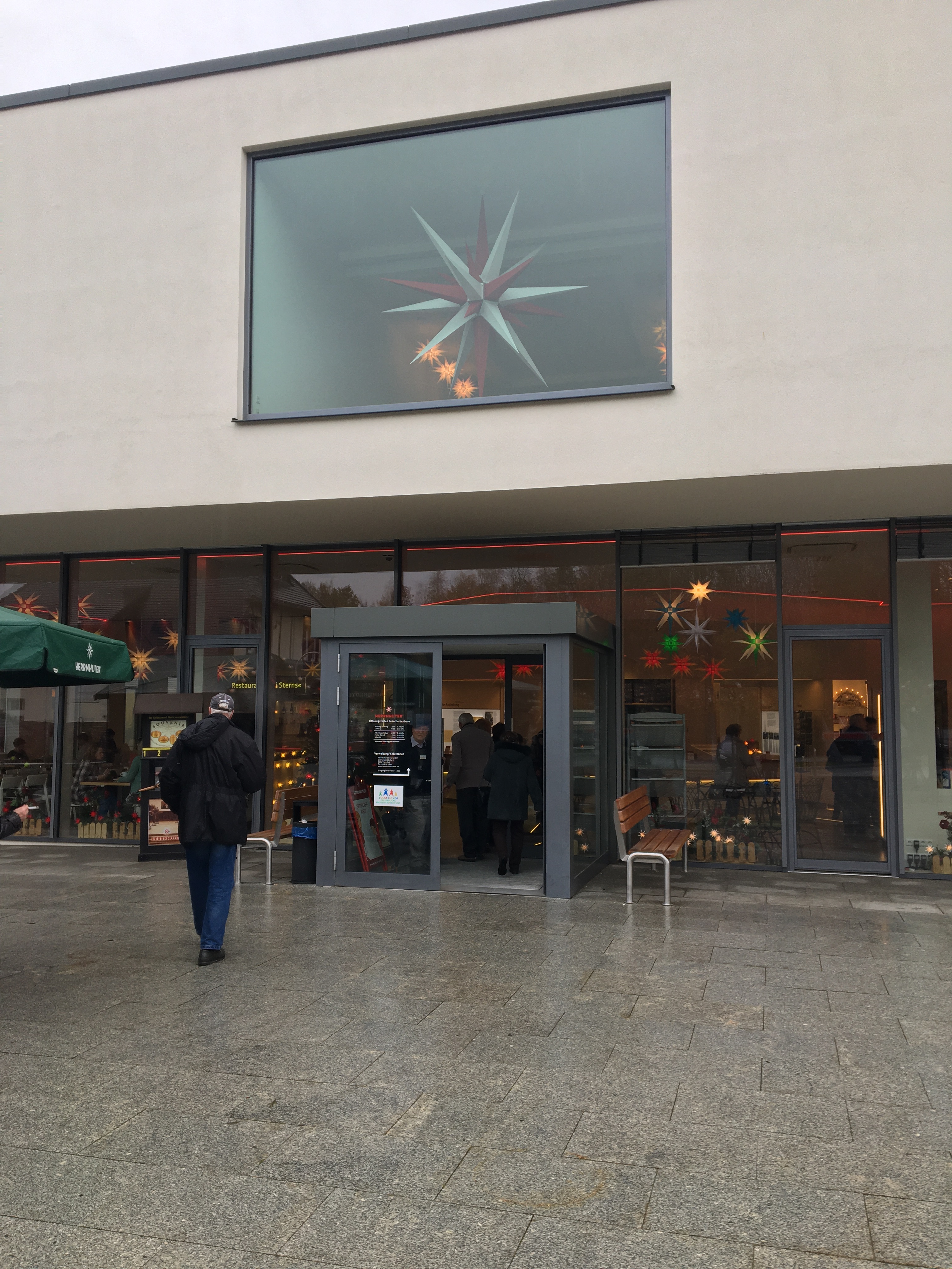 街の中心からほんの少し歩くと、世界中に知られている「ヘルンフートの星」を販売しているコーナーがある。周辺には製作できる工房もある。クリスマスツリーなどのサイズに合わせて大きさを選べる。小さなタイプならばとお土産に買えるかな、と思ったが、全部コンセントにつなぐタイプで、しかもプラグの形状が220Vのヨーロッパタイプだったので、残念ながら諦めた。